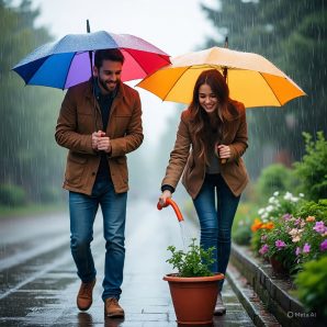 📸 Imagen sugerida: Dos amigos bajo un paraguas en un día gris, sonriendo mientras caminan bajo la lluvia.
