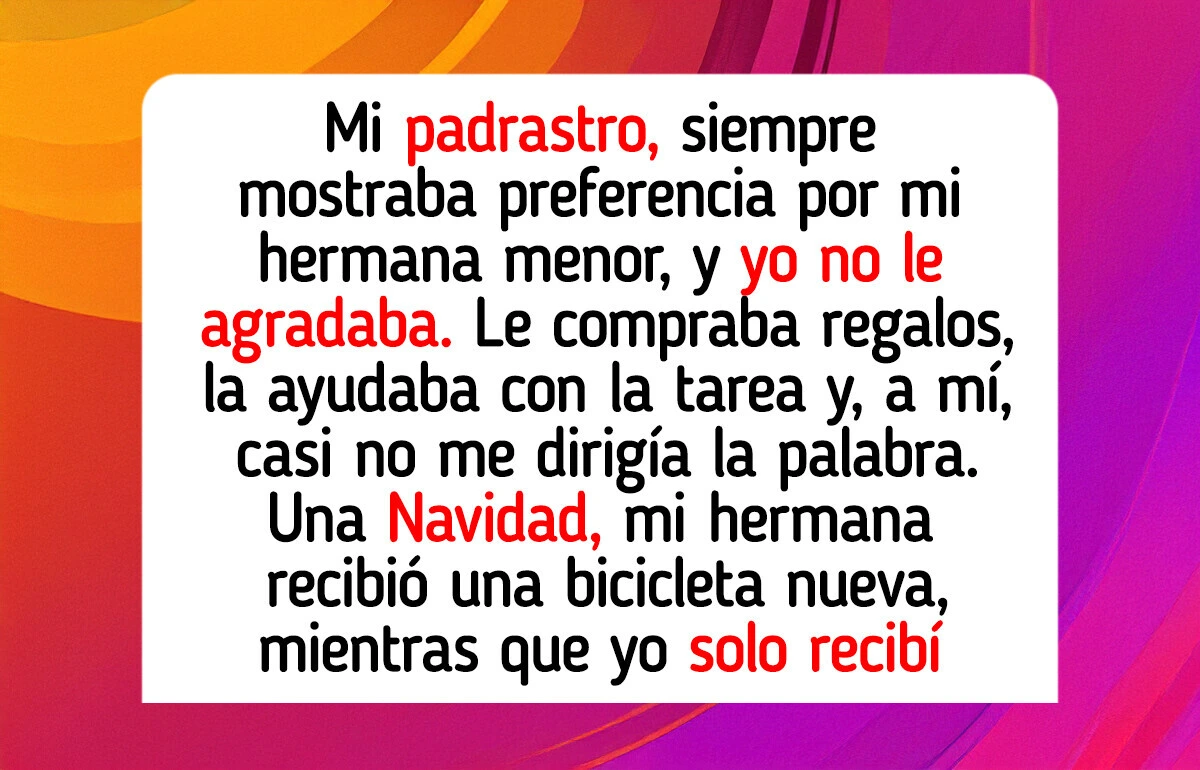 Una Navidad, mi hermana recibió una bicicleta nueva, mientras que yo solo recibí una tarjeta. Ya estaba harta, así que lo confronté. Pero él, con calma, simplemente dijo: “Eres demasiado mayor para eso. Lee la tarjeta”.