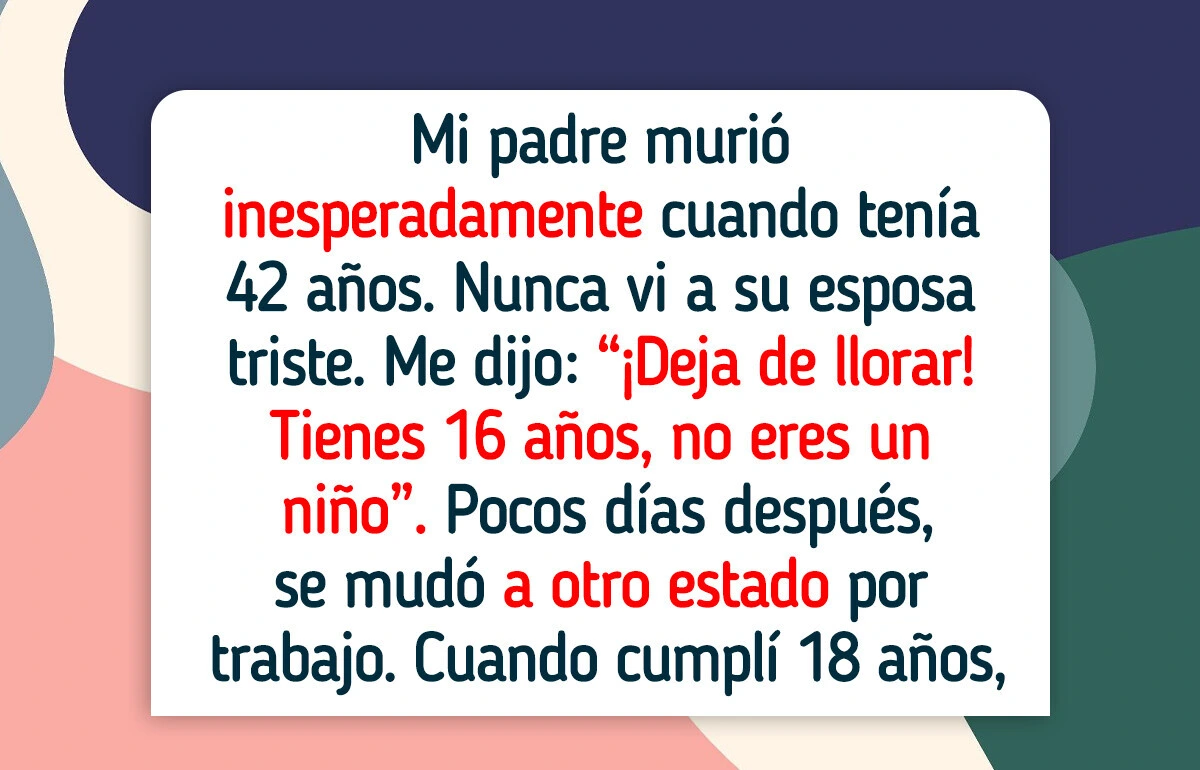 - Mi padre murió inesperadamente cuando tenía 42 años. Nunca vi que su esposa mostrara una sola señal de tristeza. Me dijo: “¡Deja de llorar! Tienes 16 años, no eres un niño”.