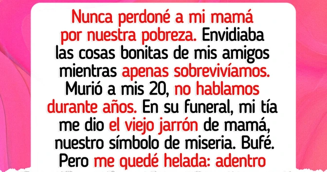 Cuando yo tenía 20 años, ella murió. Llevábamos dos años sin hablarnos. En su funeral, mi tía se me acercó y me dijo: “Tu madre quería que tuvieras su viejo jarrón. El que tenía el adorno rosa, ¿te acuerdas, verdad?”.