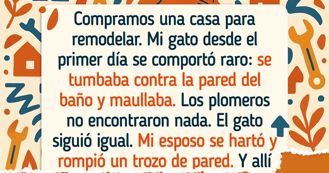 - Compramos una casa para remodelar. Mi gato desde el primer día se comportó raro: se tumbaba contra la pared del baño y maullaba a todo pulmón. Los plomeros no encontraron nada. El gato siguió igual, dándonos sus “conciertos” todos los días. Mi esposo se hartó y rompió un trozo de pared. Y allí… El tubo de ventilación estaba tapiado, y el condensado se acumulaba dentro, todo se pudría y le salían hongos. ¡Un par de meses más y habríamos tenido que derribar media casa! Ahora el gato duerme donde quiere y solo come comida cara. Porque después de esta historia creo que puede hacer cualquier cosa.