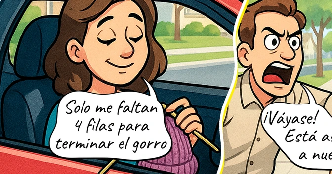 - Me detuve a la vuelta de mi casa para terminar las últimas 4 filas de un gorro que estaba haciendo como regalo de Navidad. Era pleno día, y yo en mi Nissan Versa rojo (versión hatchback, o sea, prácticamente un acuario sobre ruedas). De repente, sale un tipo con su esposa y otra mujer más, gritándome que me fuera, que estaba asustando a sus hijos por tejer frente a su casa. ¿Perdón? ¿Una señora de mediana edad con lana, en su autito viejo, da miedo? ¿En serio?
