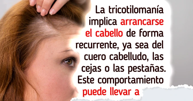 - La tricotilomanía implica arrancarse el cabello de forma recurrente, ya sea del cuero cabelludo, las cejas o las pestañas. Este comportamiento puede llevar a zonas visibles de alopecia y genera gran angustia emocional.