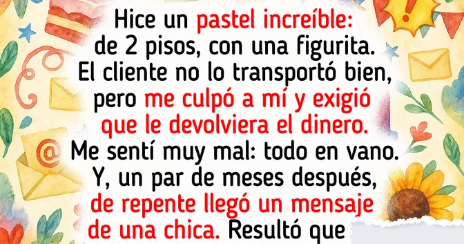 Hice un pastel increíble: de 2 pisos, con una figurita. El cliente no lo transportó bien, pero me culpó a mí y exigió que le devolviera el dinero. Me sentí muy mal: todo en vano. Y, un par de meses después, de repente llegó un mensaje de una chica. Resultó que ella estaba en aquella fiesta. Me dijo que el pastel estaba increíblemente delicioso y me encargó dos de ellos. Esta vez todo salió bien con el transporte.