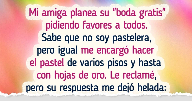 Me dijo que quería que hiciera el pastel, y luego me mandó unas fotos “para inspiración”. Los pasteles eran ridículamente elaborados. Estamos hablando de varios pisos, flores de fondant, hojas de oro, y uno incluso tenía un diseño de acuarela pintado a mano. No soy pastelera profesional, solo me gusta hornear galletas y brownies a veces. Le dije que esos pasteles probablemente me tomarían días para hacerlos, y que no me quedarían ni de cerca tan bien. Ella como que se rio y dijo: “Ay, no se trata de que sea perfecto, se trata de que todos colaboren. ¡Será divertido!”.