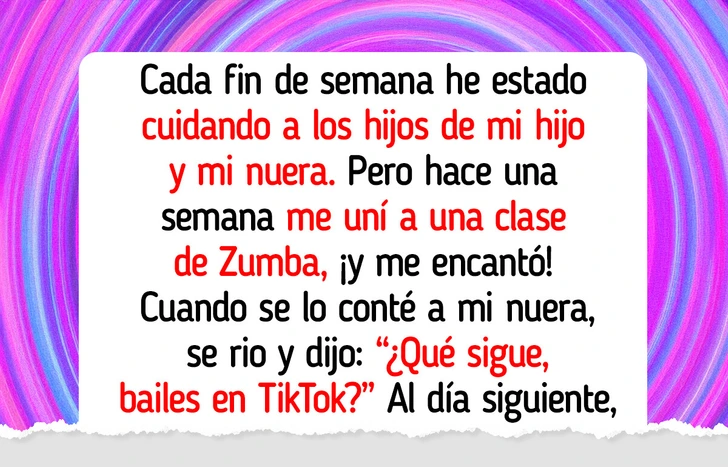 Cada fin de semana he estado cuidando a los hijos de mi hijo y mi nuera. Pero hace una semana me uní a una clase de Zumba, y me encantó. Cuando se lo conté a mi nuera, se rió y dijo: “¿Qué sigue, bailes en TikTok?” Ese comentario me dolió.
