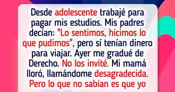 Me apoyé en mí misma y trabajé muy duro. Ayer me gradué de la facultad de Derecho, pero no los invité. Sentí que no se habían ganado el derecho de compartir ese momento conmigo.