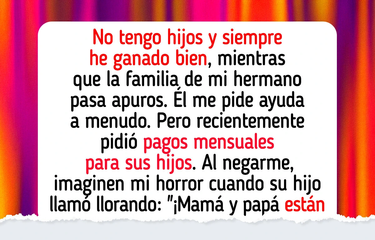Me llamo Elena. No tengo hijos y siempre he ganado bien, mientras que la familia de mi hermano pasa apuros. Me ha pedido ayuda a menudo.